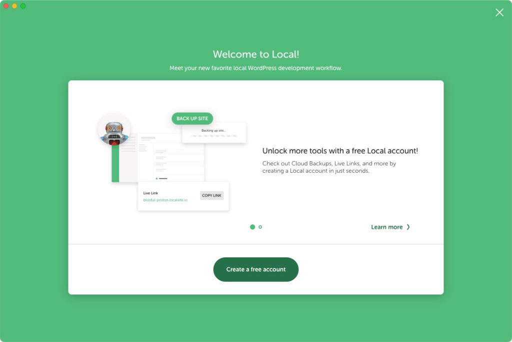 まずLocalのWebサイトでLocalをダウンロードする。その前にアカウントは作成しておいた。