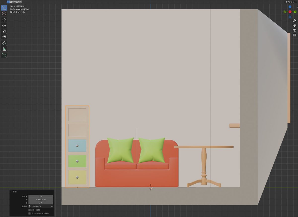 先週に引き続き、Blenderのモデリングの復習をする。一通り、パーツのモデリングが終わったので、今日はアセットの配置のやり方を復習した。