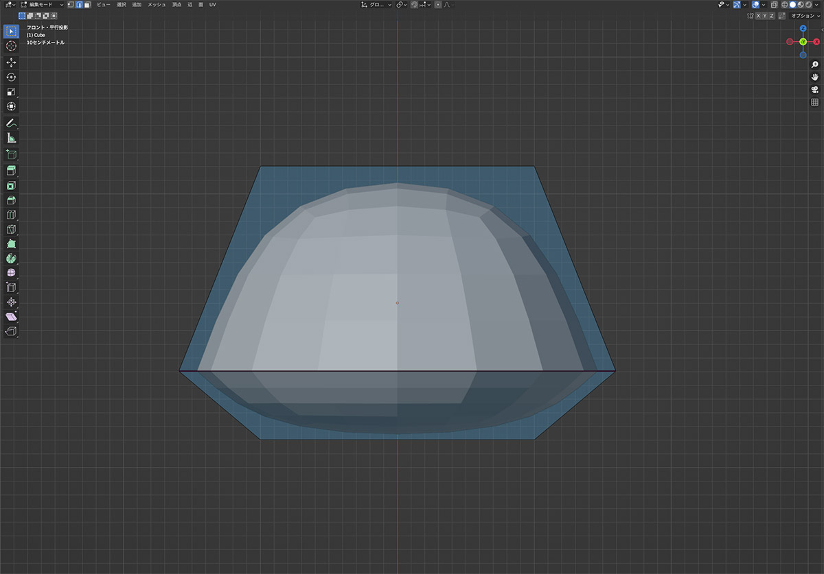 上の画のように、単純な作りからはじめるのだが、なかなかこの形から目的の形状になると把握するのは困難だ。初期の立方体から、ループカットを増やしていくと、段々と曲げられる部分や引っ張れる部分が追加されていくという手順を取るのだが、それが通常のやり方なのかどうかもよく分からない。