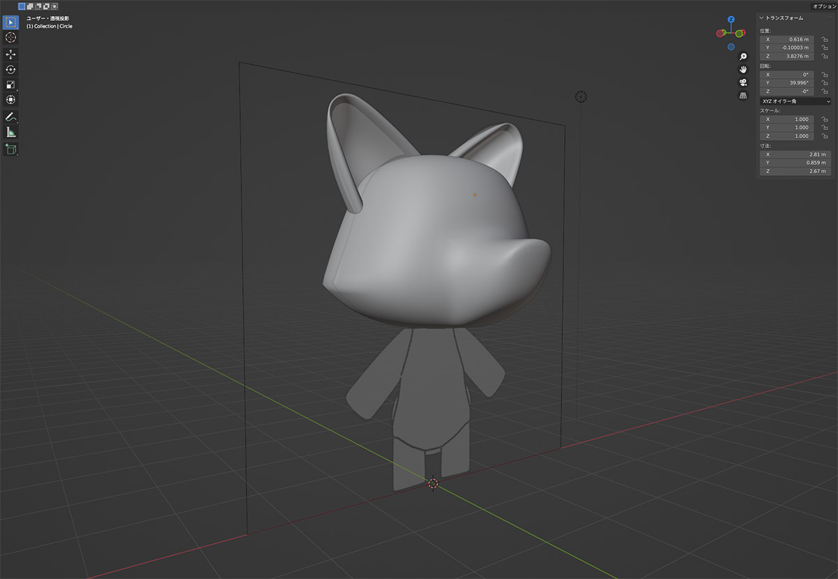 かなり時間を要した(実際は4時間以上作業をしていた)が、一応これでキャラクターのモデリングは完了。あとはボーンを入れて、シーンに配置するだけ。