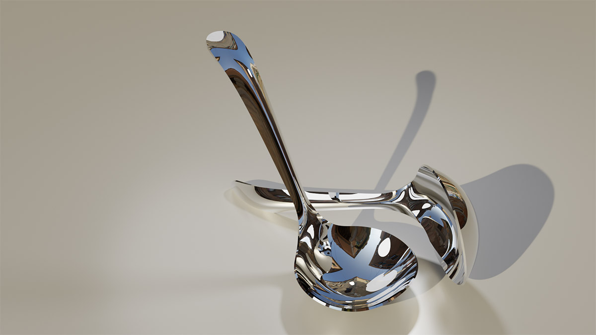 次はおたま。スプーンにも通じる制作方法で厚みを持たせていない平面のメッシュからサブディビジョンサーフェスをかけて丸みを持たせるという手法が参考になった。
