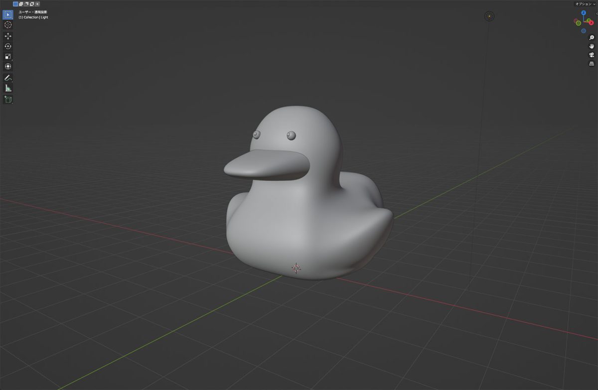 頭部はかなり目標に近い形になったが、尻尾は少し不格好だ。もう少し尖らせたかったが、なかなか上手くいかない。もう眠かったのでここで断念して、マテリアルを設定してカメラとライトを決める。