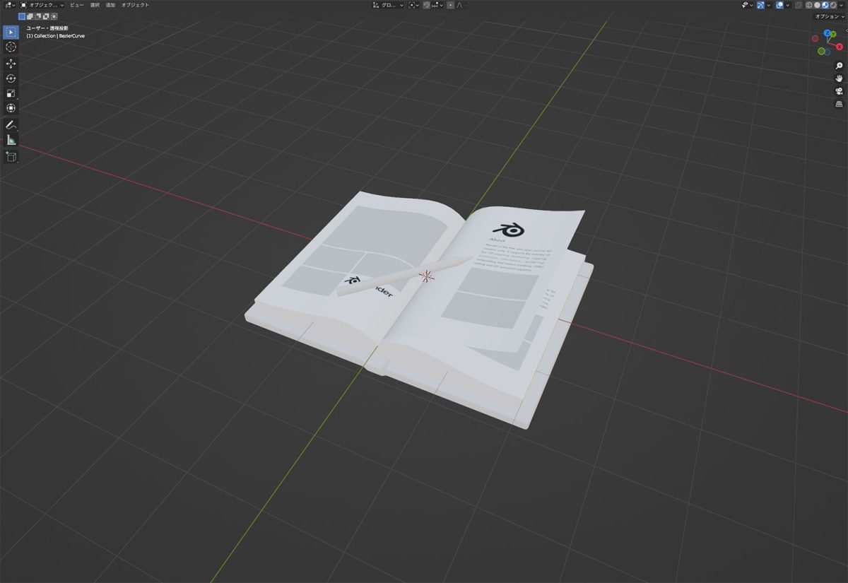 なるほど、本のモデリングとめくるアニメーションはこうやって作られていたのかと納得出来るようなレシピでとても参考になった。めくれるページのテクスチャの設定が肝で、まずめくれる状態のページを作っておいてUV展開する。UV展開したモデルに合わせてテクスチャを貼っておくと、あとはカーブを変形しても位置的に破綻しないようだ。