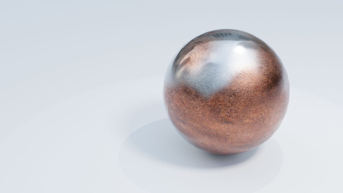 今日はTextureに直接ペイントするプロセスを学んだ。簡単な金属の球に錆のテクスチャ、バンプマップ、金属の濁り(粗さ)をペイントで加えていく。