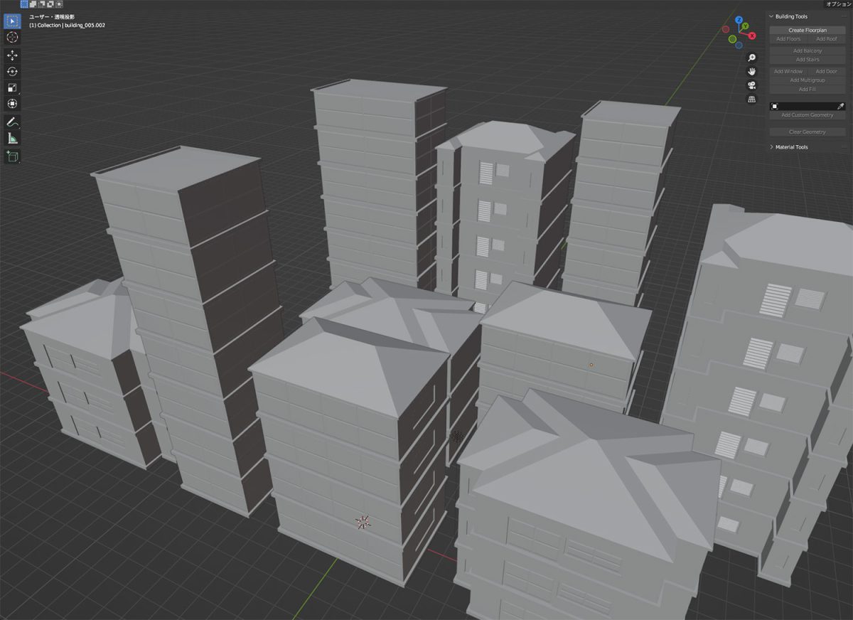 まずはプラグインを有効にして、とりあえず使ってみる事に。ものの5分足らずでこういった建物のベースが作れるようになっている。実際の建造物のモデルを作る際は、このモデルをベースにして、細かな部分を作り込んでいくようだが遠景用のモデルであれば、これで十分なのであろう。